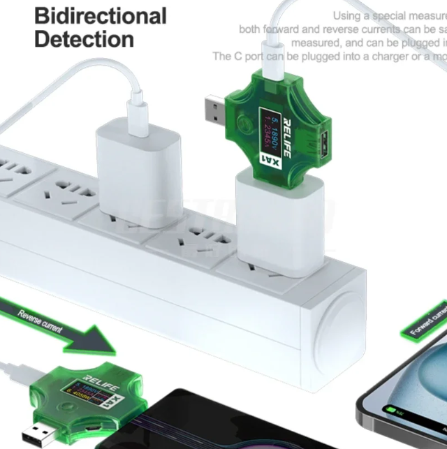 Тестер зарядного устройства Relife XA1 — это многофункциональный прибор 12-в-1, предназначенный для точного измерения параметров зарядки через порты USB-A, USB-C и Micro-USB. Он идеально подходит для специалистов по ремонту электроники, инженеров и энтузиастов, стремящихся контролировать качество и эффективность зарядных устройств и кабелей.